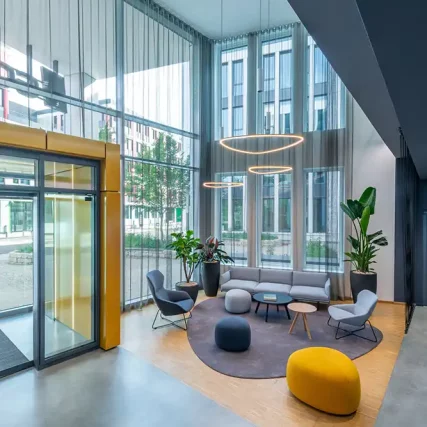 Dank der flexiblen Grundrissgestaltung ist Ihre Mietfläche exakt auf Ihre Anforderungen ausgerichtet. Sie legen zudem Wert auf Nachhaltigkeit? Sie legen Wert auf Nachhaltigkeit? Begrünte Dächer, Solaranlagen und Blühwiesen sorgen für eine ausgezeichnete Ökobilanz und Energieeffizienz. Dazu profitieren Sie von vielseitigen Ausstattungsoptionen und der verkehrsgünstigen Lage am südwestlichen Tor zu München. Erleben Sie, wie komfortabel Ihr Business-Alltag sein kann.